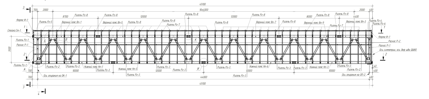 Замена поясов ферм пролетом 50 метров