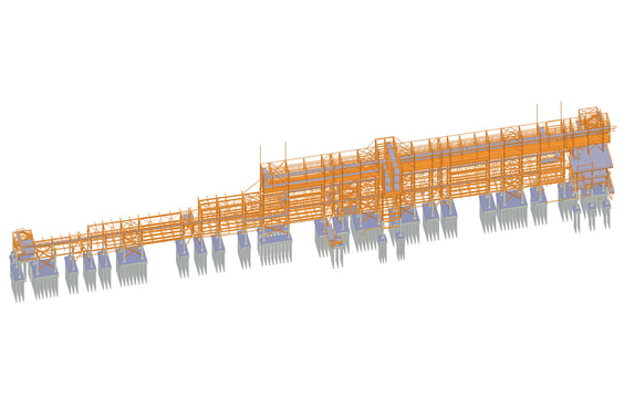 Сооружение представляет собой комбинированную технологическую эстакаду с железобетонными колоннами 1 яруса и стальной надстройкой.