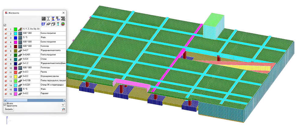 Для оценки эффективности новой марки арматуры был выполнен конечно-элементный анализ, по результатам которого определено армирование при использовании арматуры А500С, а затем рассчитана материалоемкость при применении арматуры А500СП (АРМАКС 500).