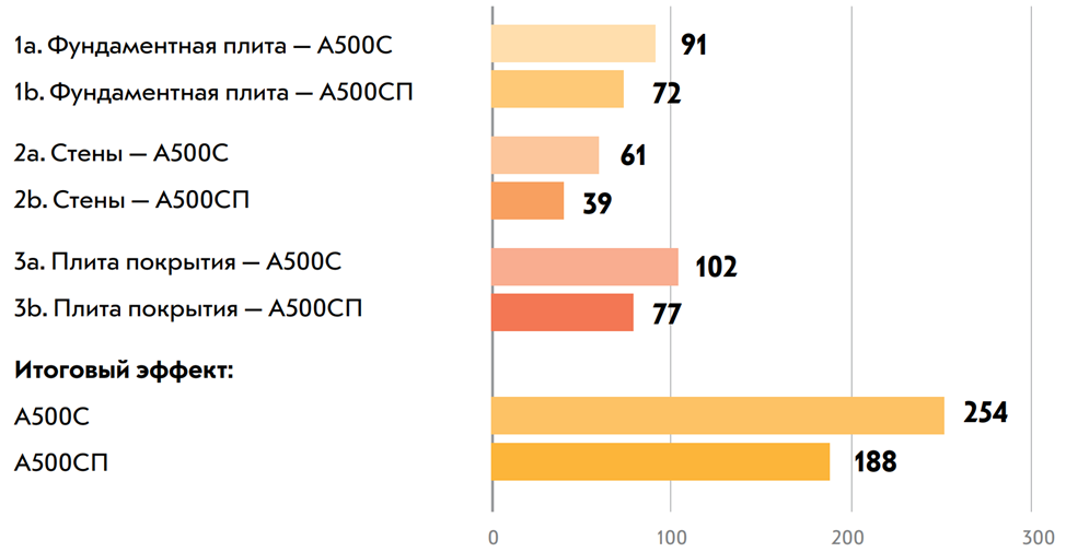 Учтены повышенное расчетное сопротивление арматуры и улучшенное сцепление с бетоном, что позволяет сократить ширину раскрытия трещин и общий расход стали.