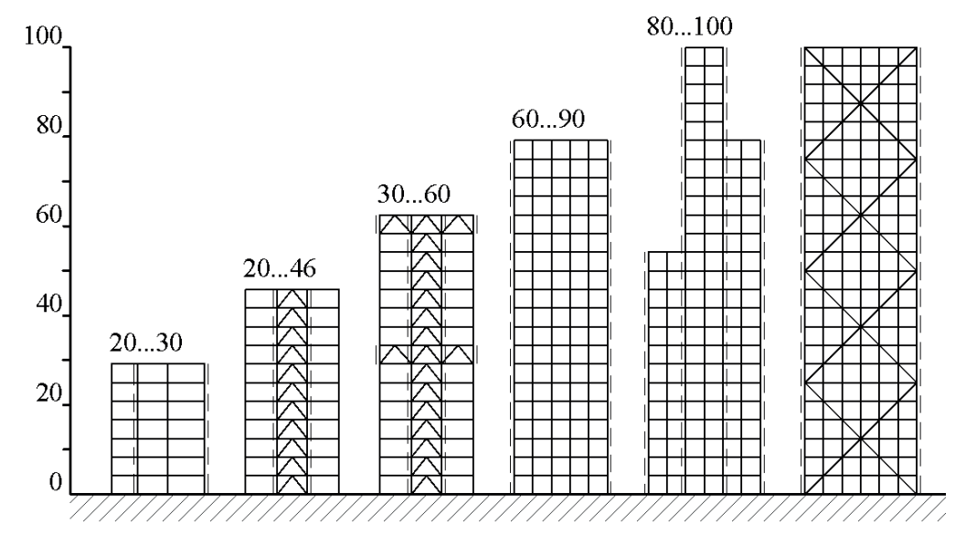 Рисунок 1 — Эволюция конструктивных решений по мере роста этажности