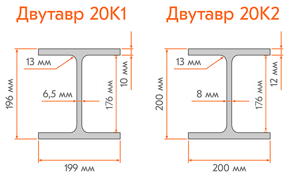 Рисунок 4 — Сравнение сортамента 20К1 и 20К2
